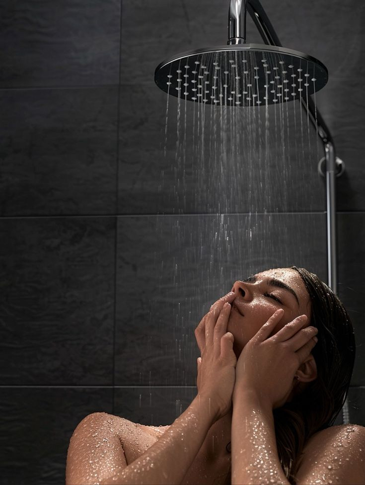 샤워 직후 피부 위에 수분이 살짝 남아 있을 때