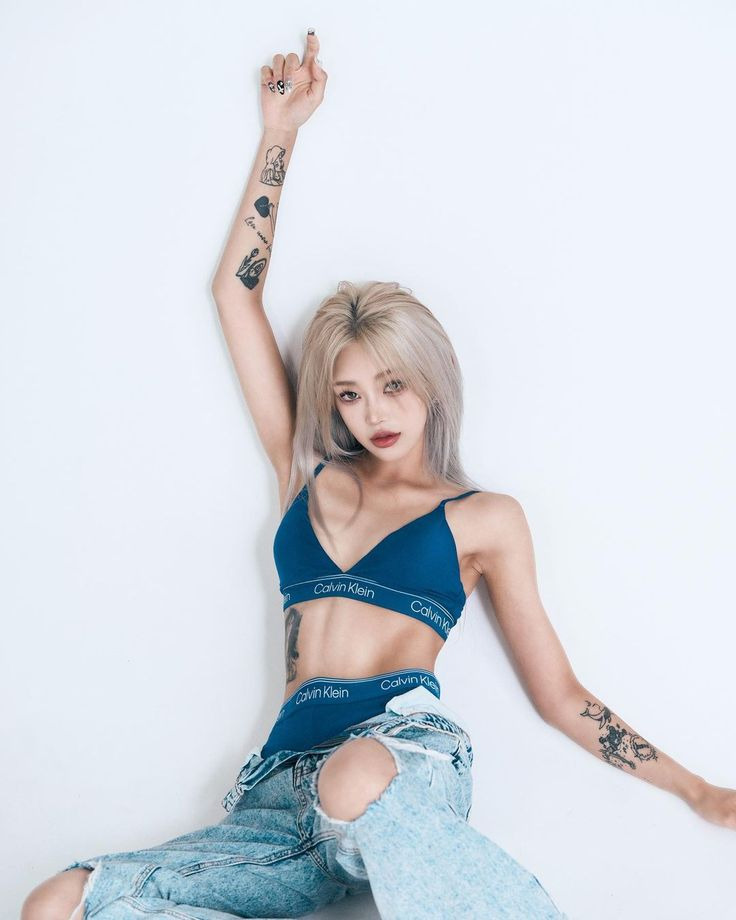 이번 화보에서 최준희는 화이트 바디수트 + 웨트헤어 + 스모키 메이크업 조합으로