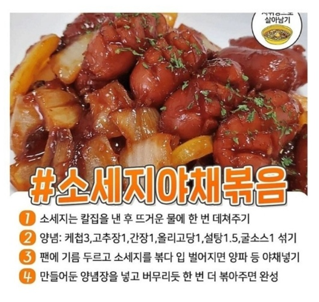 안녕하세요? 오늘 소개해드릴 내용은 누구나 손쉽게 만들수 있는 "달달하고 맛좋은 반찬 레시피" 모음 입니다. #소세지야채볶음 일명 쏘야~, 손쉽게 만들어 밑반찬, 도시락반찬, 술안주로도 제격인 녀석입니다~ #들기름 계란 후라이 계란후라이 하나도 좀 더 힙하게 먹어봐야죠~ 식용유대신 들기름만 사용해도 2배 더 고소하고 맛이 배가 됩니다. #달큰 소불고기 어린이 입맛 손! 우쭈쭈, 우쭈쭈 그래서 준비했어요~ 달달함이 배가 되는 달큰 소불고기 레시피! #간장 계란장 계란 한판 통째로 담가놓고 두고두고 먹기 좋은 반찬! 오늘 바로 만들어 두자고요~ #감자채볶음 밑반찬의 정석! 없으면 서운해~감자볶음~~ #간장 닭조림 치맥이 땡긴다면~ 오늘은 치킨말고 닭조림으로 색다른 맛에 빠져보면 어때?? #햄계란말이 도시락,..